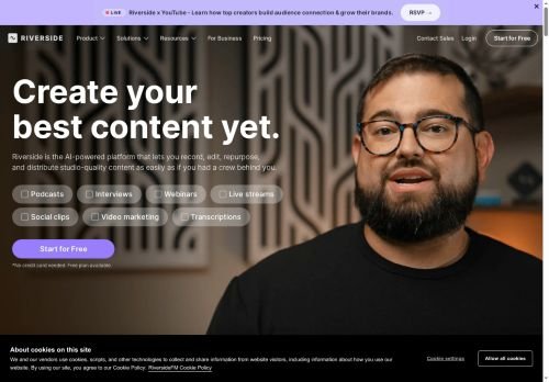 AI Transcription by Riverside offers fast and accurate transcription for video and audio files in 100+ languages with speaker detection.