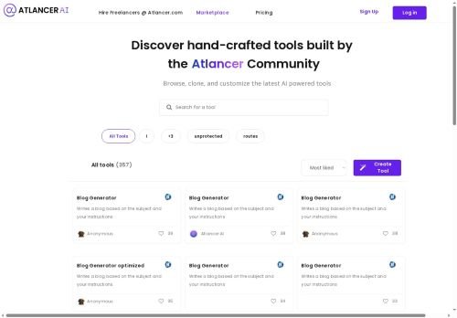 Atlancer AI offers self-generating AI tools with a user-friendly interface for creating custom AI solutions for chatbots, data analysis, and process automation.