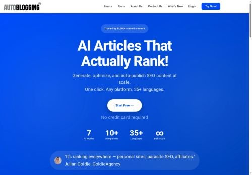 Autoblogging.ai is an AI-powered tool that effortlessly generates unique and readable articles.