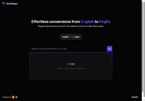 AutoRegex utilizes AI to effortlessly generate regex patterns and translate English text with its NLP-powered engine, catering to developers, data analysts, and non-technical users alike.