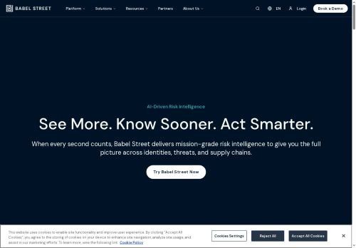 Revolutionize knowledge management and utilization with Babelstreet, an AI-powered data-to-insights platform for global safety. Babelstreet provides actionable insights for decision-making, AI-driven threat intelligence for asset protection, automated risk decision processes for fraud prevention, and real-time insights and predictive security for a safe environment. Its main features include advanced analytics, natural language processing, and machine learning algorithms to process vast amounts of data and generate valuable insights for enhancing security measures and mitigating risks effectively.