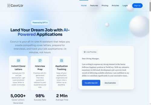 CovrLtr, an AI-powered writing and management tool, efficiently creates personalized cover letters for job applications.