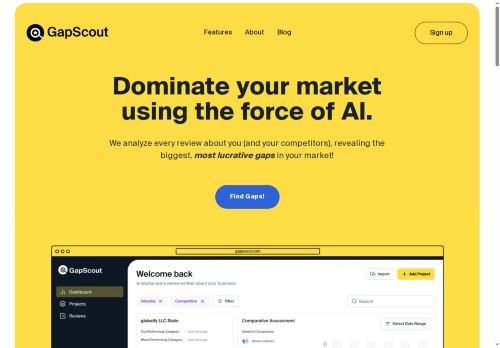 Revolutionize market research with GapScout, an advanced AI analysis tool that uncovers valuable insights and maximizes sales potential. Identify market gaps, refine marketing strategies, gain competitor insights, and enhance customer experience using GapScout’s AI-powered market research software. With main features such as real-time data collection, trend analysis, and predictive modeling, GapScout provides actionable intelligence to drive business growth and success.