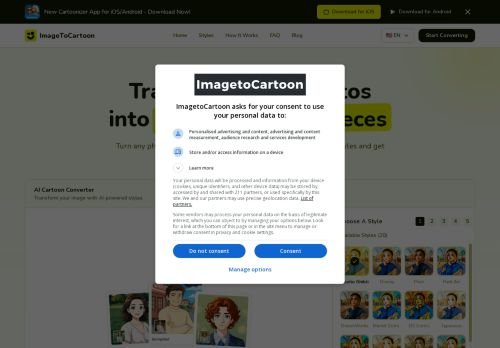 - Transform photos into captivating cartoon or anime styles with AI technology
