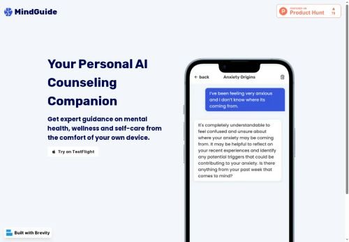 MindGuide is an AI-powered mental health support tool that provides personalized counseling and guidance through a user-friendly interface. Its main features include 24/7 availability, convenient support for busy schedules, and affordable costs. MindGuide is valuable for individuals seeking to enhance their mental wellness, especially those with limited access to qualified counselors. With its innovative technology, users can receive tailored support anytime, anywhere, making it a valuable resource for those in need of accessible and effective mental health assistance.