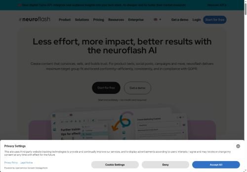 Neuroflash is an AI-powered content creation tool for high-quality marketing texts, decision-making support, and content impact measurement.