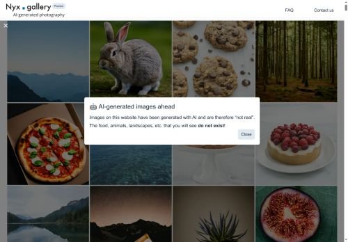 Nyx provides AI-generated previews of food, animals, and landscapes for high-quality images, unique visuals, and inspiration.