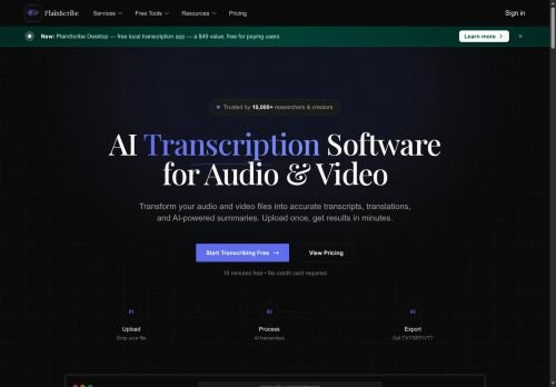 PlainScribe is an advanced AI tool that effortlessly transcribes large files into perfect text with exceptional accuracy. Its main features include automatic speech recognition, language processing algorithms, and real-time editing capabilities. This powerful application is ideal for educators, researchers, journalists, media professionals, business professionals, and content creators who need to transcribe audio or video files quickly and accurately. With PlainScribe, users can save time and improve productivity by easily converting spoken words into written text with precision and efficiency.