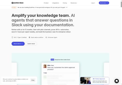 Questionbase transforms Slack channels into knowledge bases with AI-powered question detection and answer generation capabilities.