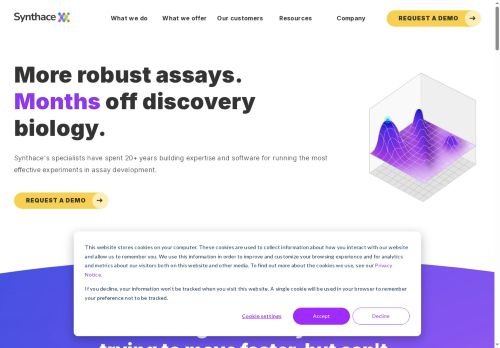 Synthace is a pioneering digital platform integrated with AI that accelerates R&D insights, enhances lab productivity, maintains experiment integrity, and unleashes the potential of a true AI scientist.