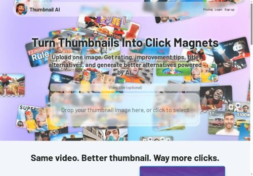 ThumbnailAi enhances YouTube thumbnails with AI ratings and suggestions for optimal visual appeal to improve click-through rates, engagement, and brand visibility.