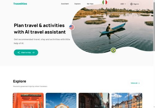 Effortlessly plan your ideal trip with Travelities, an AI-powered travel planner that creates personalized itineraries, finds travel deals, accommodations, and suggests things to do based on your style, preferences, and budget. Save time and effort by letting Travelities do the work for you, ensuring a seamless and stress-free travel experience. With just a few minutes of input, Travelities will generate a comprehensive travel plan tailored to your needs, making it easier than ever to plan your next adventure.